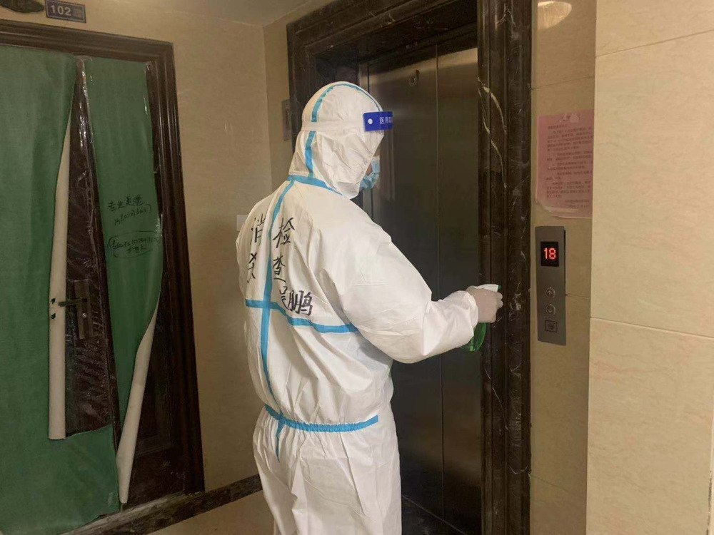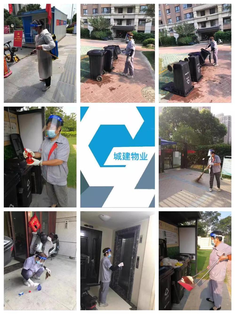 目前,京杭融園小區每天保持2至3次對小區全范圍消殺的頻率,主干道、垃圾池、電梯轎廂、電梯廳……一處都不會被錯過。特別是每隔一日的核酸檢測過后,物業還會組織保潔人員對小區再次進行消殺,重點對大家途經的道路、門廳、門把手、電梯等處進行消毒。