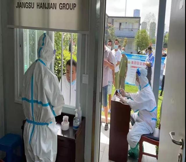 2.有序組織全員原地核酸檢測。為防止人員核酸檢測時發(fā)生交叉感染,項目部與屬地主管部門積極溝通,由醫(yī)護人員進入工地進行核酸檢測,檢測過程中,各標(biāo)段至少安排5名以上管理人員配合核酸檢測秩序維持等工作,確保民工全員檢測,一個不漏,檢測完畢,立刻進行全面消殺。工地內(nèi)辦公區(qū)、生活區(qū)、食堂區(qū)每天兩次安排專人消毒并設(shè)置隔離區(qū),一旦發(fā)現(xiàn)有發(fā)熱、咳嗽等癥狀立即進行隔離并匯報相關(guān)部門。