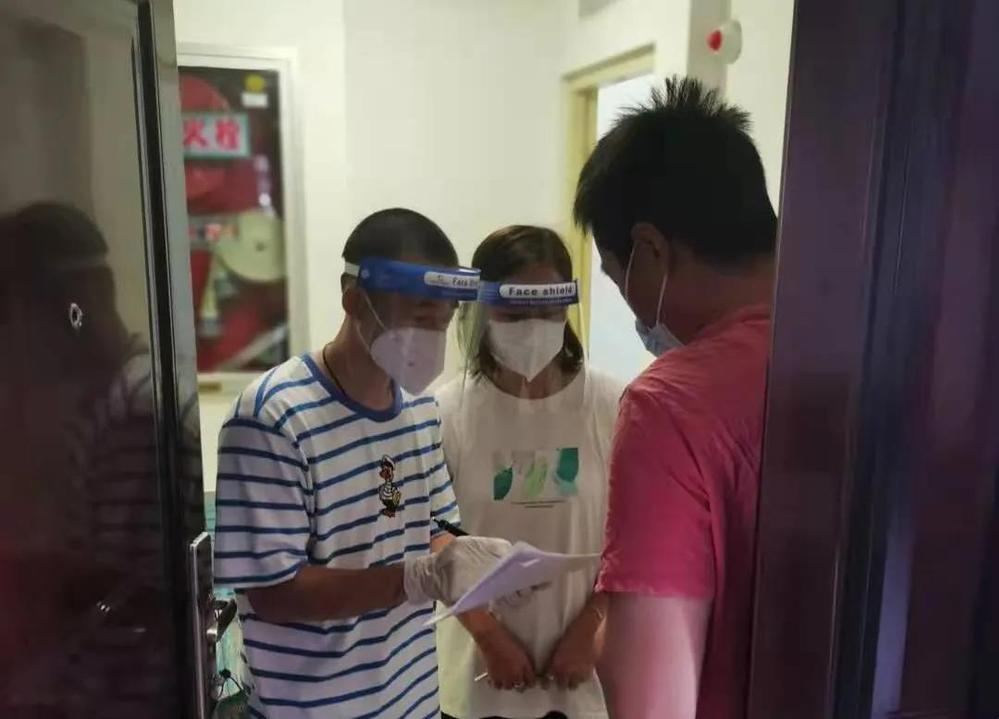 圖為資產(chǎn)公司副總經(jīng)理袁月翔和社區(qū)工作人員2人一組,進(jìn)行入戶排查工作。
