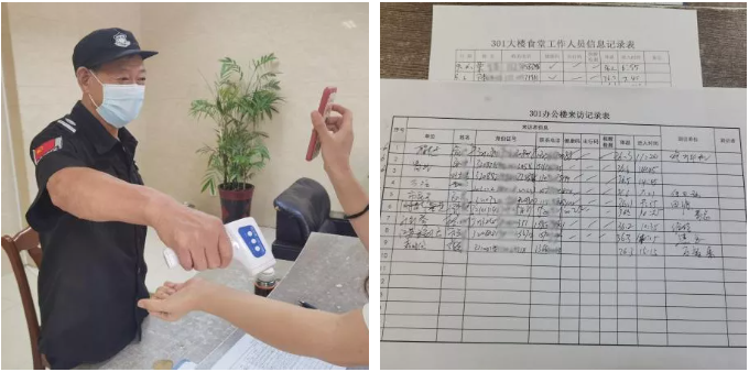 公司入口加強(qiáng)人員出入管理。復(fù)工人員在返崗前需向公司提交近三次核酸檢測報(bào)告和“兩碼”。保安嚴(yán)格把關(guān)進(jìn)出人員全程規(guī)范佩戴口罩,通過設(shè)立的智能測溫掃碼一體機(jī)對(duì)到崗職工進(jìn)行體溫測量,并登記來訪人防疫信息。體溫?zé)o異常且蘇康碼綠碼方可進(jìn)入辦公區(qū)。