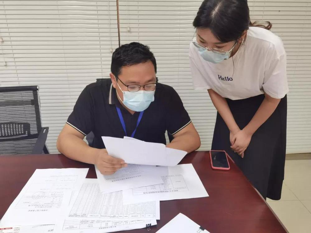 (竹西街道工作人員實(shí)地檢查市民卡公司復(fù)工復(fù)產(chǎn)情況與臺(tái)賬資料)