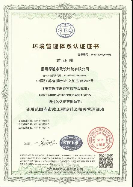 為進一步強化經營管理水平,提升行業核心競爭力,近日,德道設計院經海韋爾奇認證有限公司審定,通過ISO9001質量管理體系、ISO14001環境管理體系、ISO45001職業健康安全管理體系認證。