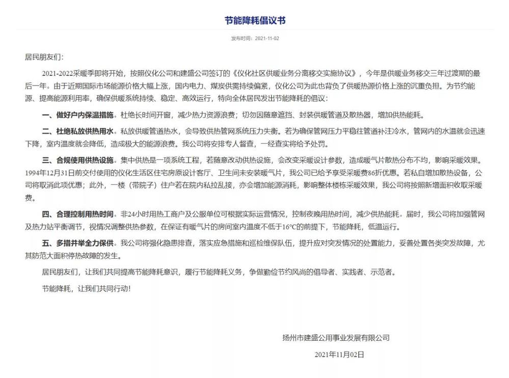 廣泛宣傳引導(dǎo),合力提升采暖效果。今年是公司供暖業(yè)務(wù)移交三年過渡期的最后一年。面對今冬能源緊張,煤炭供需持續(xù)偏緊的形勢,公司一方面通過服務(wù)大廳宣傳屏、微信公眾號、公司網(wǎng)站廣泛宣傳供熱政策和用熱知識;另一方面,在區(qū)域內(nèi)20個供熱小區(qū)張貼今冬供暖通知、發(fā)放節(jié)能降耗倡議書,讓廣大居民在了解今冬供暖嚴(yán)峻形勢的同時,主動增強節(jié)能降耗意識,積極加入到節(jié)能降耗行動中來,合力提升今冬采暖效果。