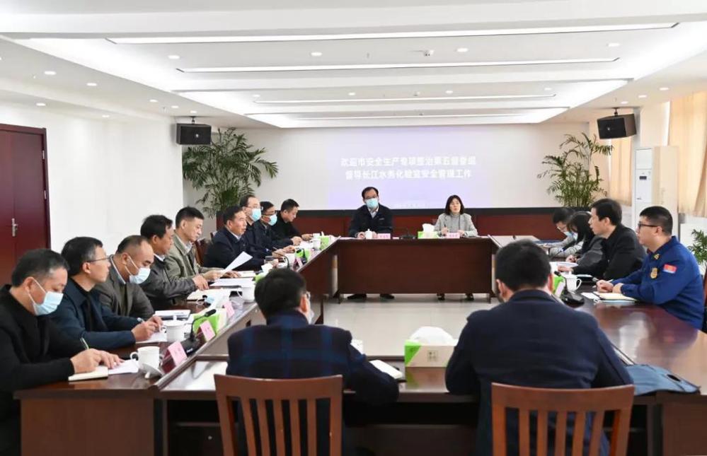 督查組一行首先來到長江水務水質檢測中心對?;穾旆?、儀器室、氣源室等重點區域進行了現場督查,并在隨后召開的督查會上聽取了長江水務、潔源排水公司關于化驗室隱患排查工作開展情況的報告。