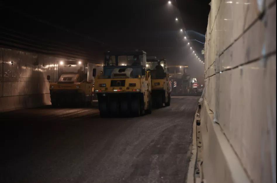 12月4日下午2時,經過31個小時的奮戰,運河快速路萬福西路隧道西半幅主線瀝青路面順利攤鋪,標志著萬福西路隧道瀝青攤鋪工作全部完成,為實現運河快速路年底前全線通車的目標奠定了堅實的基礎。