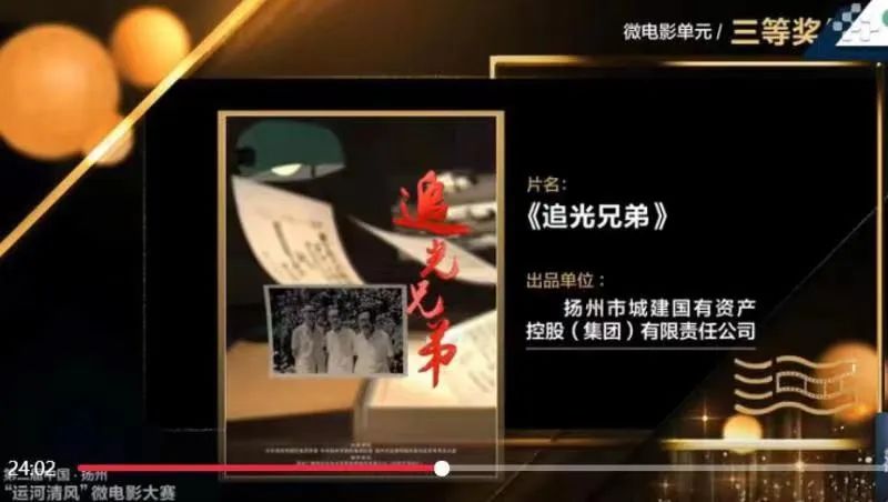 備受關(guān)注的第二屆中國·揚(yáng)州“運(yùn)河清風(fēng)”微電影大賽頒獎活動于6月19日在揚(yáng)州運(yùn)河大劇院舉行。本屆大賽由中國紀(jì)檢監(jiān)察雜志社、江蘇省紀(jì)委監(jiān)委、揚(yáng)州市紀(jì)委監(jiān)委、揚(yáng)州市委宣傳部共同主辦。大賽共征集到參賽作品1600余部,經(jīng)大賽組委會初評、復(fù)評、終評三輪評審,由城控集團(tuán)拍攝的《追光兄弟》榮獲大賽微電影單元三等獎。