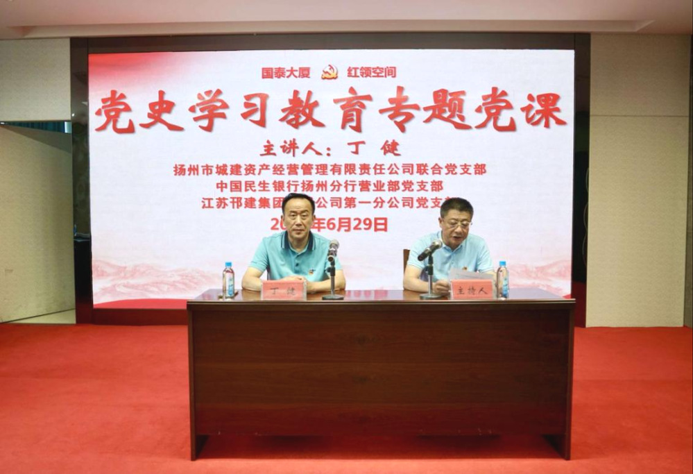 為進(jìn)一步引導(dǎo)廣大黨員知史愛黨、知史愛國, 6月29日,在“七一”建黨節(jié)來臨之際,資產(chǎn)公司聯(lián)合黨支部聯(lián)合國泰大廈入住單位——中國民生銀行揚州分行營業(yè)部黨支部、江蘇邗建集團有限公司第一分公司黨支部,邀請市委黨校培訓(xùn)處丁健處長在國泰大廈“黨建紅領(lǐng)空間”作《輝煌百年黨史及其啟示》專題授課。