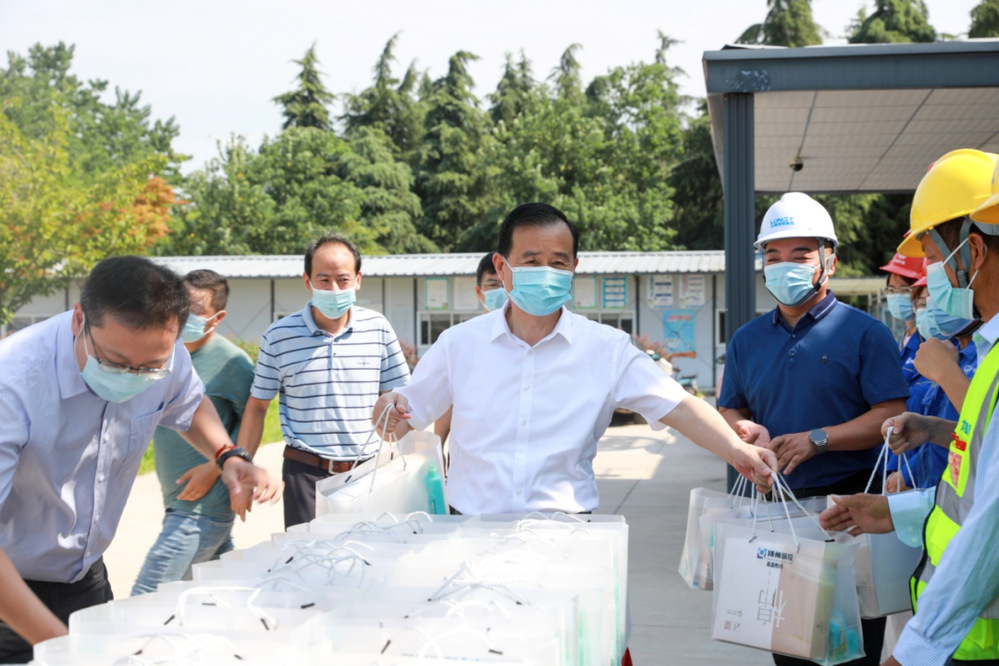 7月13日,董事長葉善祥先后來到運河路亮化工程現(xiàn)場和頤和項目部,詳細(xì)了解工程施工情況,看望工程建設(shè)者,對大家的辛勤付出表示感謝。他囑咐現(xiàn)場負(fù)責(zé)人,高溫下連續(xù)工作非常辛苦,要主動關(guān)心高溫作業(yè)崗位人員,備好備足防暑降溫物品,采取錯時作業(yè)、輪換作業(yè)等措施,合理安排戶外工作時間,切實保障一線職工的身心健康和施工安全。