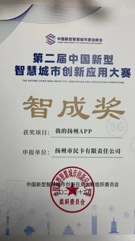 近日,中國新型智慧城市建設峰會在線上順利召開,本次峰會由國家信息中心、青島市人民政府、山東省大數據局聯合主辦。會上公布了峰會配套創新應用大賽獲獎結果,本屆大賽聚焦行業領域突出應用成效和創新建設理念,設置了行業賽道和創新賽道。由揚州城控集團市民卡公司申報的“我的揚州APP”從全國18省50市的1000余個優秀項目中脫穎而出,榮獲“智成獎”。