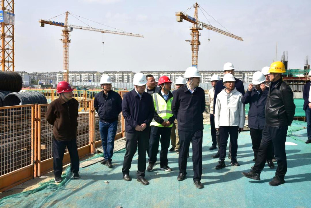 在天璟融園項目現場,趙慶紅聽取了項目部關于施工進展情況匯報,對深基坑及高支模的施工質量及安全措施進行了詳細檢查,詢問了鋼筋等材料的檢測情況。他指出,本項目正進行正負零以下施工,要高度重視安全生產工作,尤其是高支模、深基坑等重點部位和環節的施工。
