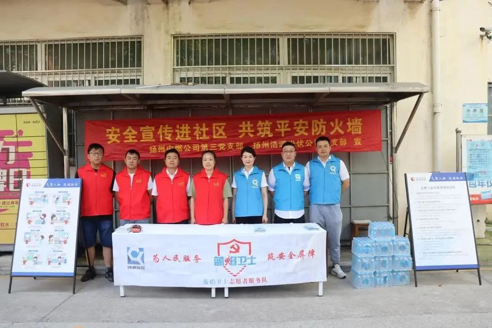 為充分發(fā)揮黨組織戰(zhàn)斗堡壘和黨員先鋒模范作用,進一步普及用電、用氣安全知識,7月24日上午,潔源光伏公司黨支部聯(lián)合揚州中燃公司第三黨支部前往石橋社區(qū)嘉豐苑小區(qū)開展“安全宣傳進社區(qū),共筑平安防火墻”志愿服務(wù)活動。