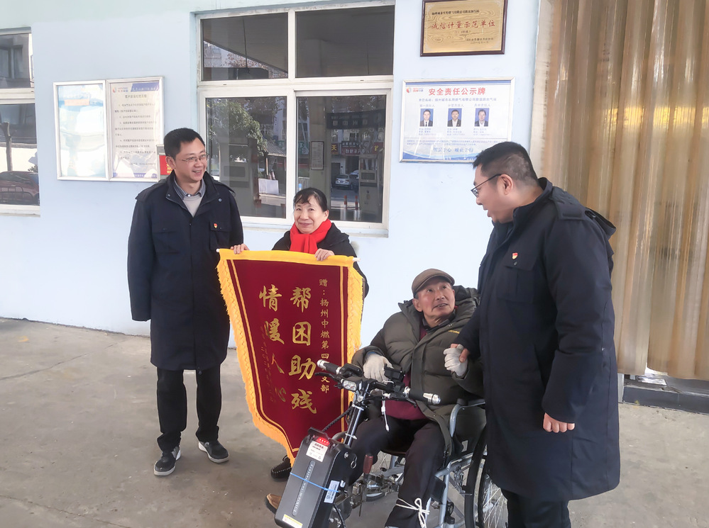 近日,連福社區(qū)徐鴻林和愛人將一面寫有“幫困助殘 情暖人心”字樣的錦旗送到揚(yáng)州中燃公司第四黨支部,以表達(dá)對(duì)藍(lán)焰老兵志愿者對(duì)其日常生活的照料。
