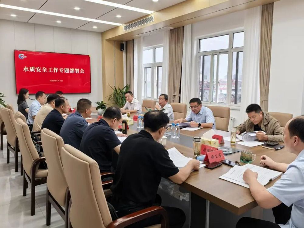 近期省內外個別地區水質事件引發社會廣泛關注,為供水行業敲響水質安全警鐘。為切實筑牢供水安全屏障,長江水務于2025年9月2日上午召開水質安全工作專題部署會,圍繞原水、制水、監測等環節部署水質保障工作,明確應急處理與保障措施。公司領導班子成員和相關部門負責人參加會議。