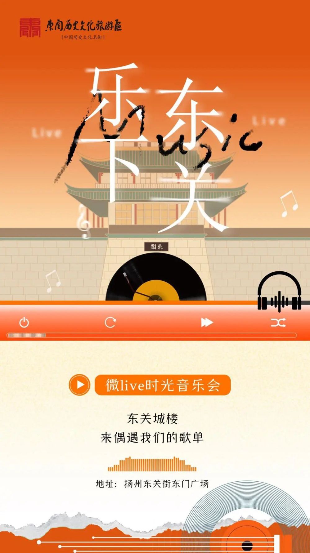 揚州東關街,這座承載著千年歷史的文旅名片,青磚黛瓦間流淌著廣陵古城的煙火與韻味。為進一步挖掘其文旅潛力,推動音樂藝術與古城文化深度融合,響應文旅產業高質量發展需求,推動古城夜經濟,揚州市名城建設有限公司擬舉辦 “樂下東關” 微 Live 時光音樂會,讓千年城墻下響起 “流動的樂章”,為市民與游客帶來全新的文化體驗。