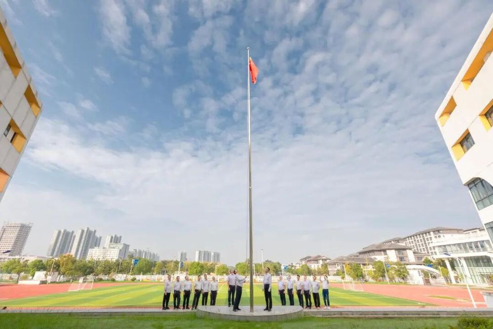 上午8時整,儀式正式開始。三名護旗手邁著鏗鏘有力、整齊劃一的步伐,護衛著鮮艷的五星紅旗走向升旗臺。“向國旗——敬禮!”的口令響起,伴隨著雄壯激昂的《義勇軍進行曲》,五星紅旗迎風展開,在全場人員深情的注目禮中冉冉升起,直至頂端迎風飄揚。這一刻,莊嚴而神圣,濃濃的愛國情懷和自豪感在每個人心中油然而生。