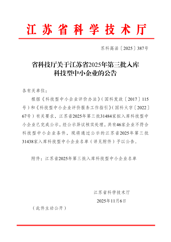 近日,江蘇省科學(xué)技術(shù)廳公布了江蘇省2025年第三批入庫科技型中小企業(yè)名單,揚州市政管網(wǎng)有限公司下屬子公司江蘇城安管網(wǎng)技術(shù)有限公司憑借突出的技術(shù)創(chuàng)新能力與發(fā)展?jié)摿Τ晒θ霂臁?/span>